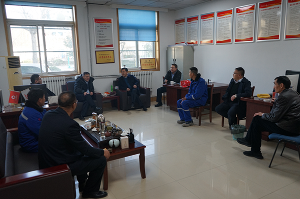 張總一行首先來到分公司駐地在辦公室聽取了公司副總經理劉占中關于平陰分公司2020年度工作開展有關情況匯報,之后對辦公區(qū)域生活環(huán)境、冬季采暖、項目部人員家庭及經濟收入等方面問題進行調研。