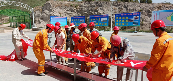 啟動儀式上,分公司經理李文軍首先強調了舉行“安全生產月”活動重要意義,然后由專職安全員張忠帶領參與人員進行了“安全生產月”宣誓;最后,全體人員在防風險、除隱患、遏事故”的紅色橫幅上進行了安全承諾簽字。