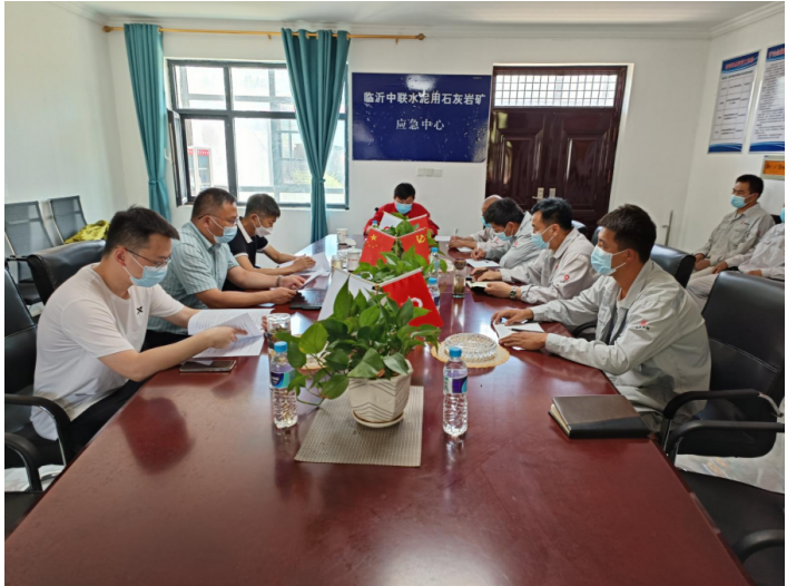 本次演練由兗州中材建設有限公司紀委書記魯臣為應急演練指揮小組組長、副總工程師閆永平和蘭陵分公司經理為副組長,演練前在蘭陵分公司會室進行了演練部署和培訓。