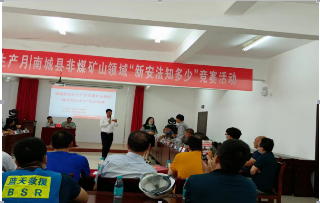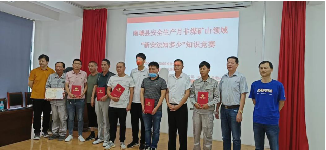 今年6月是全國(guó)第21個(gè)安全生產(chǎn)月,安全生產(chǎn)月的主題是“遵守安全生產(chǎn)法,當(dāng)好第一責(zé)任人”,今天也是全國(guó)安全宣傳日,南城縣安全生產(chǎn)委員會(huì)礦山安全專業(yè)委員會(huì)決定在江西南城南方水泥有限公司舉辦南城縣非煤礦山“新安法,知多少”知識(shí)競(jìng)賽活動(dòng)。 參賽隊(duì)伍:(1號(hào)隊(duì))南城縣新泰石材廠、(2號(hào)隊(duì))南城縣南景東風(fēng)礦業(yè)有限公司、(3號(hào)隊(duì))南城縣富耀瓷土有限公司、(4號(hào)隊(duì))南城縣青玉礦業(yè)有限公司、(5號(hào)隊(duì))江西煜晟礦業(yè)有限公司、(6號(hào)隊(duì))兗州中材建設(shè)有限公司南城分公司、(7號(hào)隊(duì))江西昌和礦業(yè)有限公司。