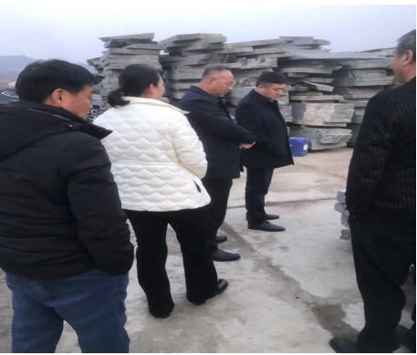 下午公司領導到達岫巖分公司所在地,緊接著參觀考察花崗巖板材加工車間,高曉梅同志講解生產工藝。