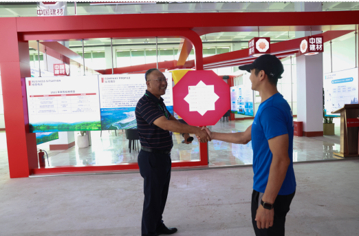 在兗州中材展廳,劉占中對企業發展歷程、經營情況、品牌建設以及在礦山生產管理上取得的成績進行了詳細的介紹,邢傲偉對兗州中材的發展狀況以及在積極承擔社會責任等方面給予了高度的評價。劉占中表示:取得奧運冠軍是中國的驕傲,走出國門為國爭光是祖國以及全國人民的驕傲;作為央企,我們心中有責任,肩上有使命,將會以奧運冠軍為榜樣,以最大的誠信,盡最大的努力走智慧開采之路,將綠色環保的石材礦山呈現在萊州市人民的眼前。