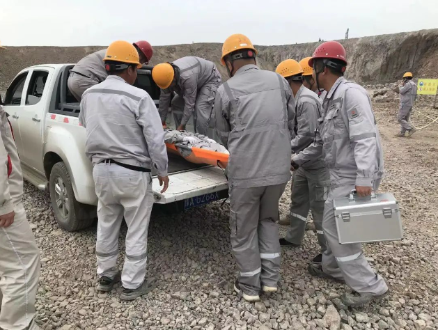 上午10時整,演練正式拉開序幕。假設情況是該露天礦山某區(qū)域發(fā)生了邊坡坍塌,造成一名作業(yè)人員腿部受傷被困。接到報告后,項目副經(jīng)理楊宇立即啟動應急預案,迅速組織了由醫(yī)療救護組、應急搶險組、警戒保衛(wèi)組、物資保障組等部門人員組成的應急救援隊伍,攜帶救援裝備,迅速趕赴事故現(xiàn)場。同時,通訊保障組也迅速建立起臨時通訊網(wǎng)絡,確保現(xiàn)場信息暢通無阻。